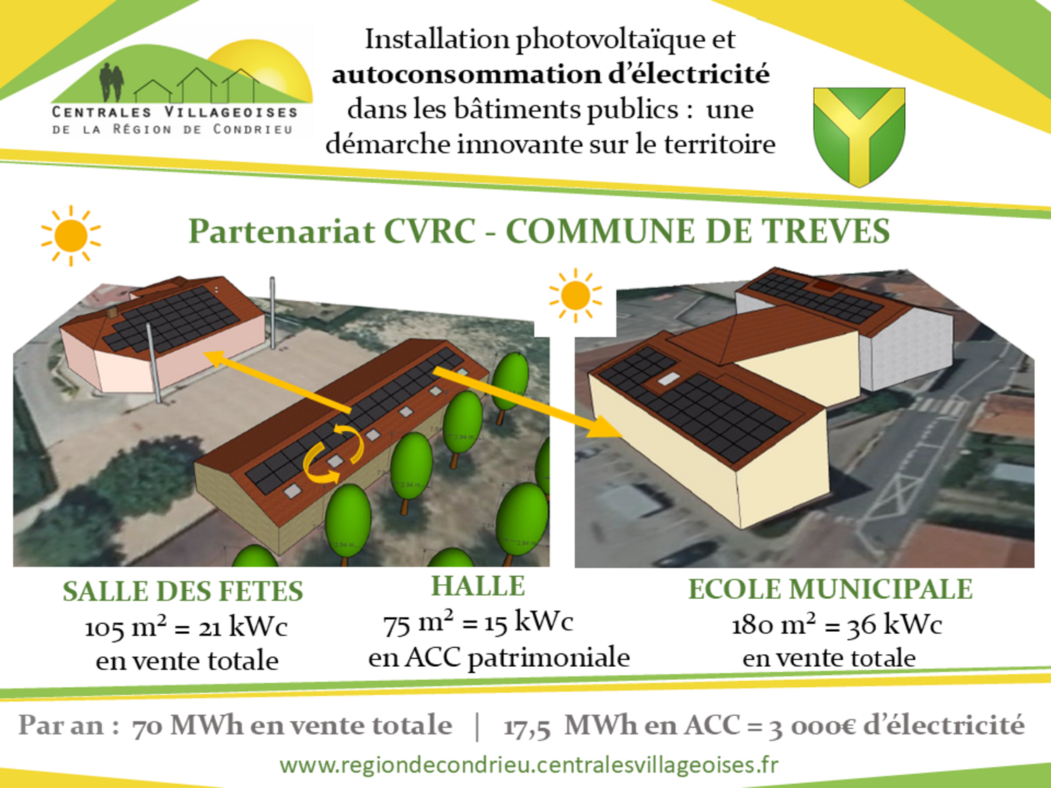 Début 2024, suite à un appel à manifestation d’intérêt, le Conseil municipal de Trèves a retenu la CVRC pour mettre en place un partenariat innovant et exemplaire : une boucle d'autoconsommation collective.
